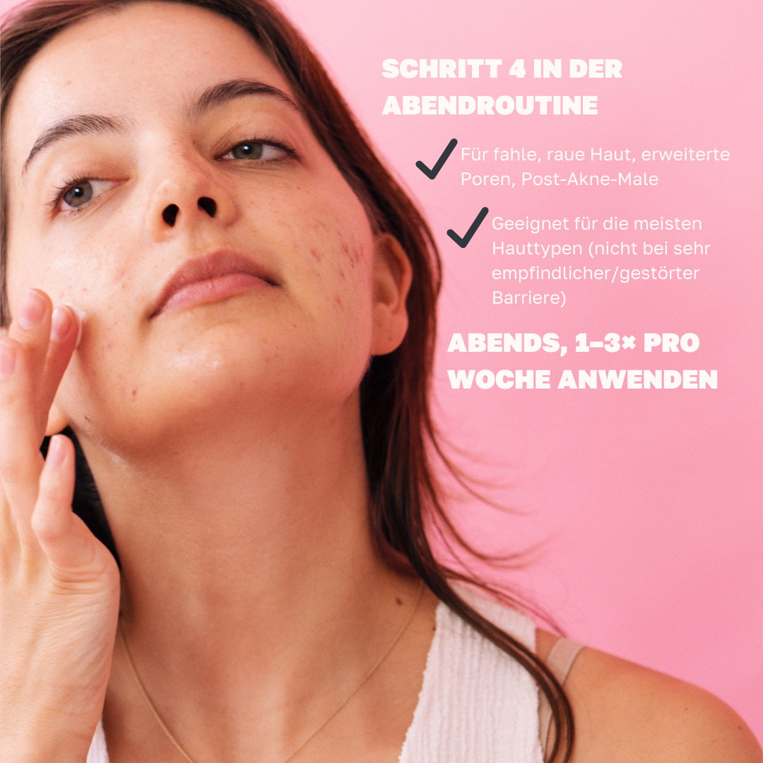 • Entfernt abgestorbene Hautzellen und verbessert die Hauttextur.