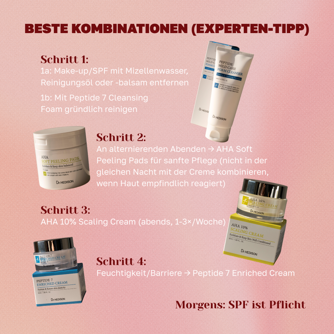 Die Dr. Hedison AHA 10% Scaling Cream ist eine sanfte Peeling-Creme, die speziell für die Pflege von öliger und Mischhaut entwickelt wurde. Sie entfernt abgestorbene Hautzellen, reinigt Poren tiefgründig und fördert die Zellerneuerung, ohne die Haut auszutrocknen.