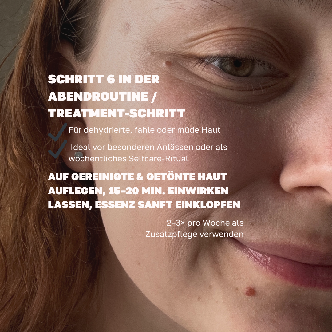 4. Maske abnehmen und die verbleibende Essenz sanft einmassieren.